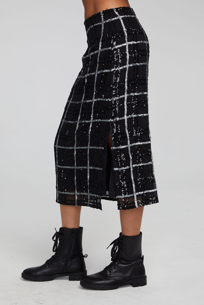 The Kana Midi Skirt is the ultimate in fall fashion; its 100% polyester and sequin adornments make it the perfect piece for a stylish, put-together look.
