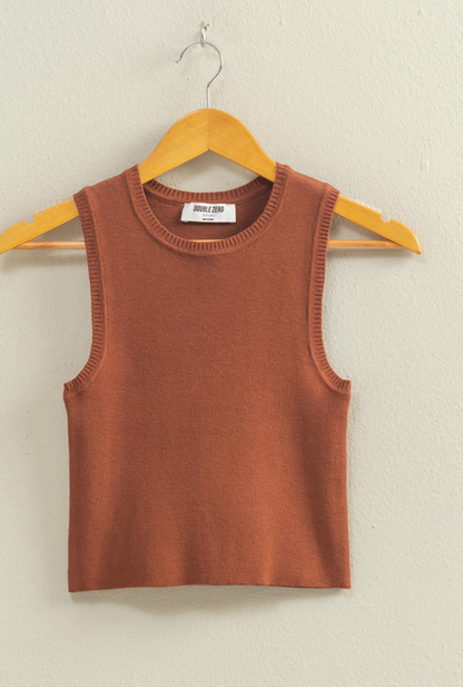 Meet the Rust Revival Knit Tank — a cozy yet refined staple for your fall wardrobe. Crafted from a soft, midweight knit in a warm rust tone, it features a cropped fit and ribbed edges for subtle texture. Perfect on its own or layered under a blazer or cardigan for effortless, modern style that transitions through the seasons.
