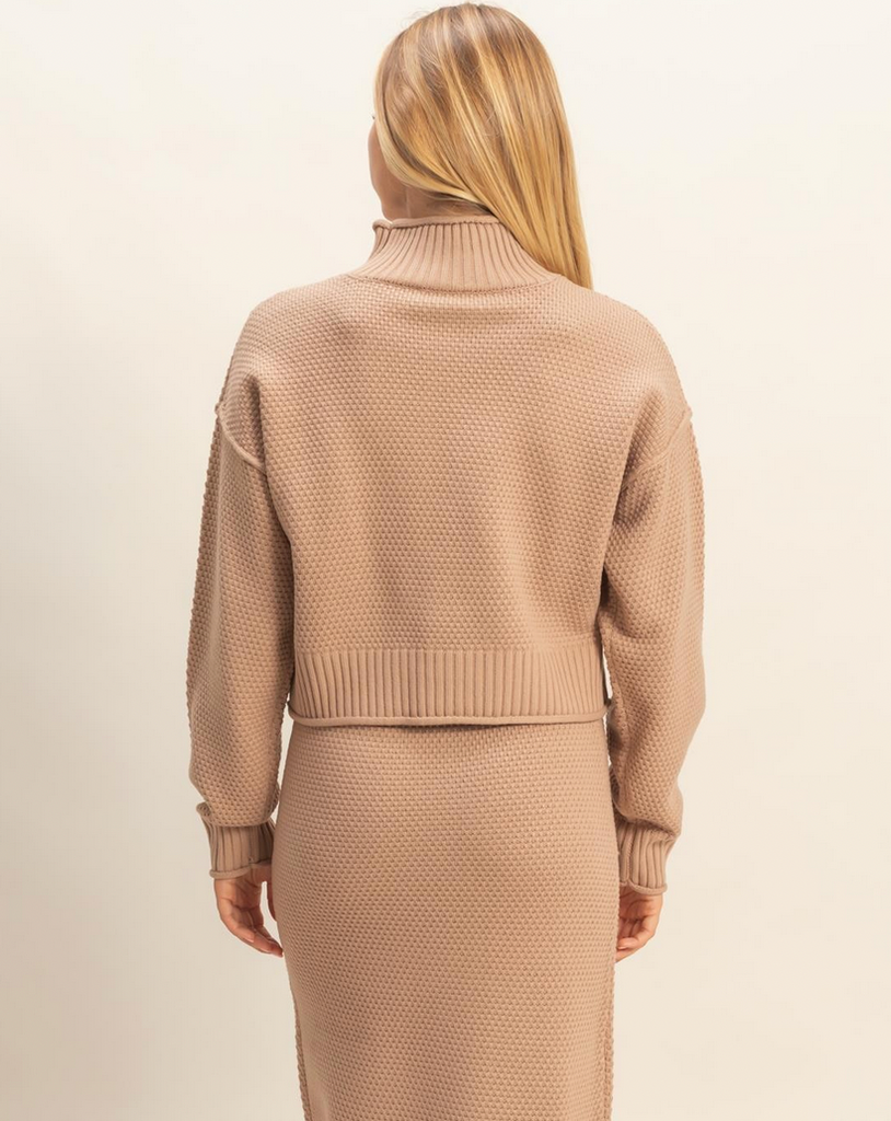 The Willa Waffle Knit Mock Neck Sweater is your go-to for effortless comfort and style. Crafted in a soft, textured knit with ribbed cuffs and hem, it offers a relaxed fit and timeless mock neckline. Perfectly pairs with denim, skirts, or the matching knit midi for a chic, coordinated look that’s cozy yet elevated.