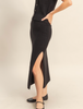 The Onyx Knit Midi Skirt delivers timeless sophistication in a cozy, flattering silhouette. Designed with a soft stretch knit and a subtle side slit for ease and movement, it pairs perfectly with the matching vest or your favorite tucked-in blouse. A versatile piece that transitions seamlessly from office chic to evening elegance.