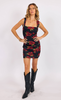 The Gypset Glamour Mini features a striking floral print and allover ruching for a flattering, sculpted silhouette. Wide straps and a square neckline add a modern, feminine touch, while the soft mesh overlay keeps it comfortable and sleek. A standout dress made for evenings when you want effortlessly bold style.