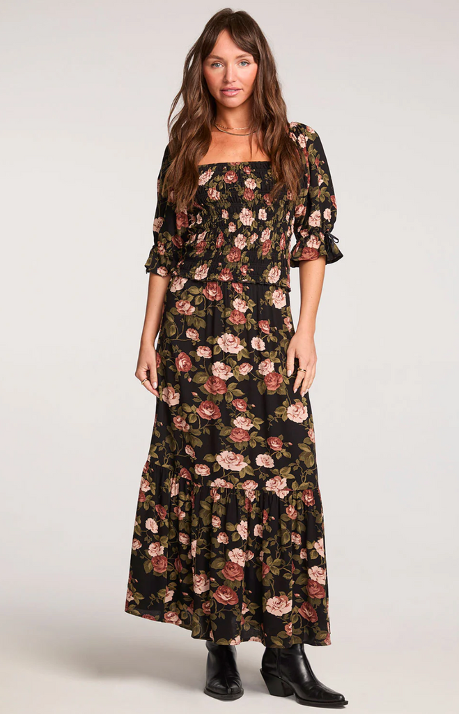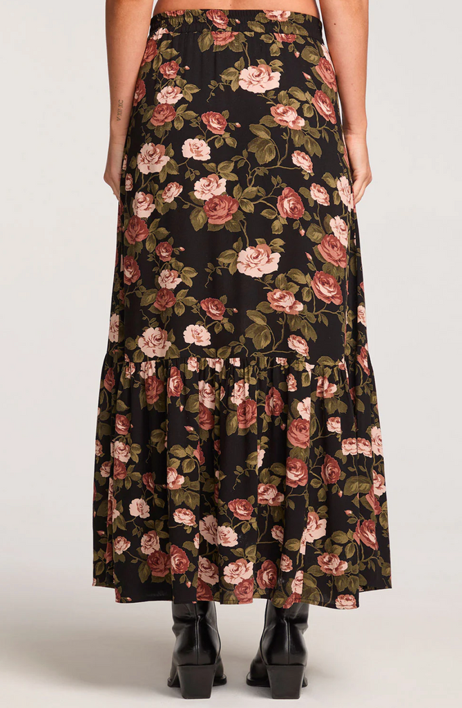 Its romantic dark botanical print complements a sophisticated wardrobe, while the design pairs perfectly with the matching Eddith Top for a coordinated and elegant ensemble.