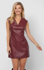 The Night Vision Dress brings modern edge with its rich burgundy faux leather finish. Designed with a flattering V-neckline, cap sleeves, and a tailored fit, this mini dress makes a confident statement. Pair it with boots for an effortlessly chic fall look or style it with heels for a night out that turns heads.