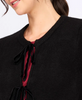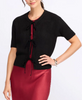 Sweet meets sleek in the Sereia Cardigan. This short-sleeve layer features plush velvet ribbon ties, a classic crew neckline, and ribbed edges for a neat, cropped fit. Wear it closed with a satin skirt, or open over a tank and jeans. Lightweight yet cozy, it’s an easy topper for downtown First Thursday plans or low-key evenings.